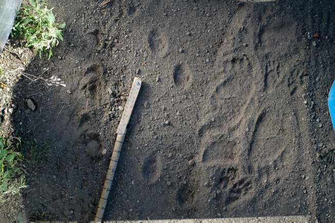 The Idea: Sometimes tracks are “simple” depressions, slightly revealed by only a little obvious relief … sometimes less than that. Noticing these can be a challenge. One helpful trick is to watch for damages to material that’s been stepped on, because this may indicate a track. A discolored or damaged object may also reveal something about how much time has passed since it was disturbed.